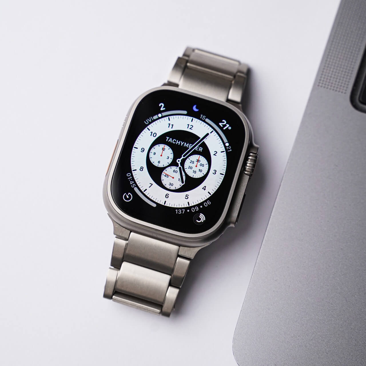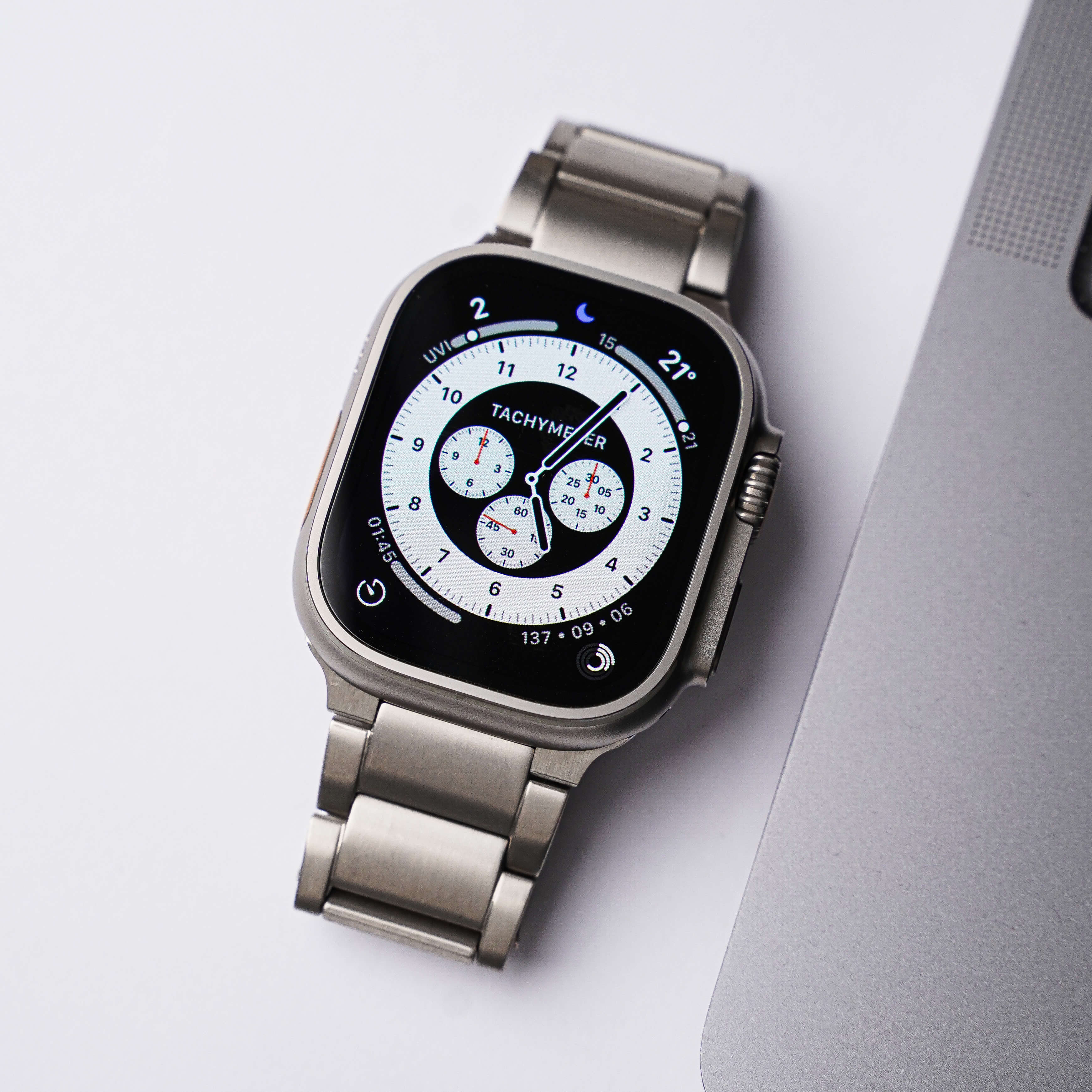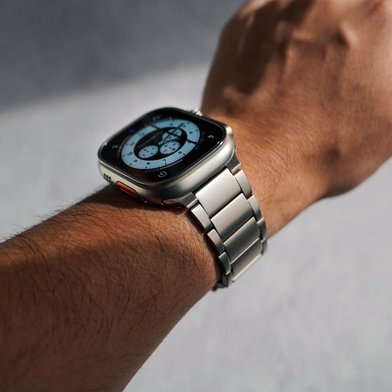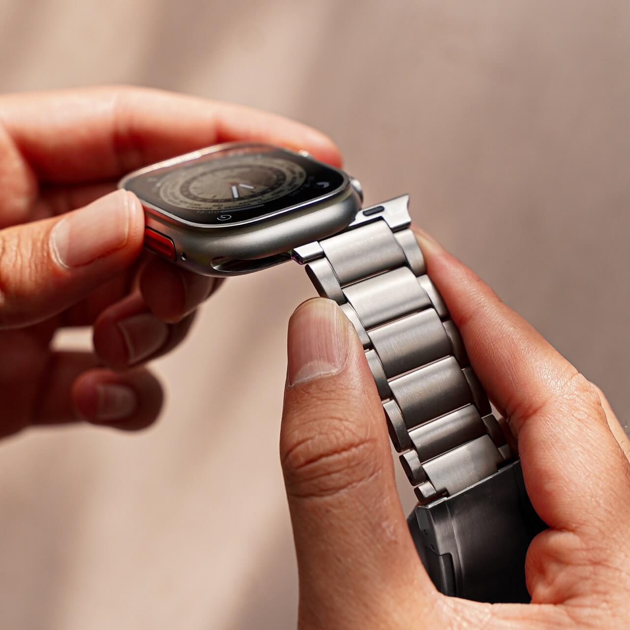 Made with the Ultra in mind, the Titanium Link Bracelet matches perfectly with the Apple watch, providing a seamless look on your wrist.